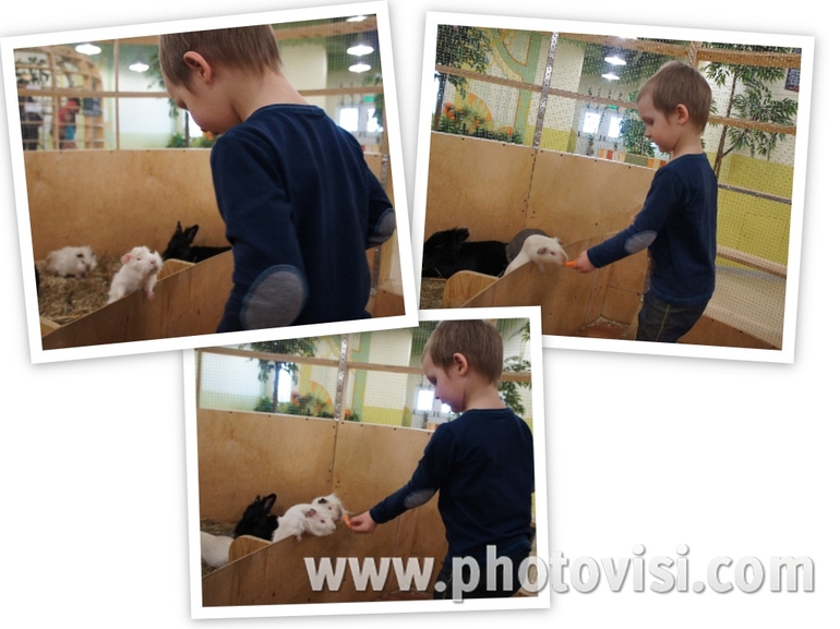 Первым был вольер с кроликами и морскими свинками, там мы зависли надолго, ходили два раза корм докупать. Они очень классные, немного пугливые, но если подольше сидеть на корточках, то они сами начинают забираться на тебя, выясняя, чем можно поживиться.