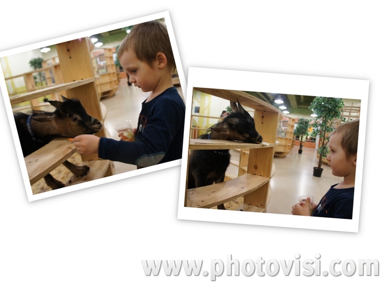 вот такой там козлёнок. Его как раз выводили гулять по залу, он "размекался" громко, испуганный такой, но судя по удивлению сотрудницы, это ему не свойственно. Вообще, видно, что сотрудники любят своих подопечных, не наигранно, а именно привязаны к ним.