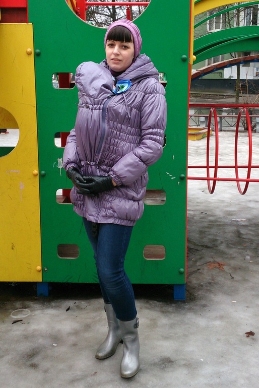 Одевать можно как обычную куртку, на животик (растягивается за счет резинок) и есть слинговставка для малыша. Капюшон (типа шлемика) одевается отдельно, к слинговставке не пришит (можно не надевать и гулять ребенка в шапке). Молнии, кармашки, утяжки… Легко попасть внутрь чтобы потрогать малыша, поправить намотку. Для этого есть специальные молнии. Куртка с отличном состоянии, носила нечасто.