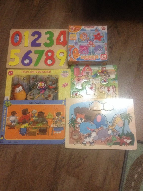 БарахолкаСегодня разобрала шкаф. В итоге нашла много игрушек, в хорошем и не очень состоянии. по возрасту часть отдала знакомым. Осталось еще немало. В основном пазлы, от 1-4 лет. На составление картинок для постарше, и на соответствие форм для помладше). Есть деревянные пазлы для изучения цифр, и цветов. С удочкой маленькие пазлы, чтобы вытягивать фигурки. Лото с животными, кто где живет. На фото -небольшая часть. Отдам за дешево.