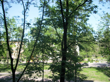 да... зелень, и такое ощущение, что дом стоит прямо в парке. Это здорово;-)