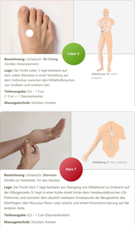 Точечный массаж является одним из классических методов традиционной китайской медицины (ТКМ). Определенные точки (точки акупунктуры и акупрессуры) на теле нажимаются и массируются пальцем. Именно поэтому точечный массаж очень подходит для самостоятельного лечения. Выбранные точки, как правило, совпадают с точками иглоукалывания (т.е. процесс, при котором определенные точки тела стимулируются очень специфическим способом с помощью тонкой иглы), однако иглоукалывание должно выполняться профессионально и, следовательно, только специально обученными врачами или терапевтами.
