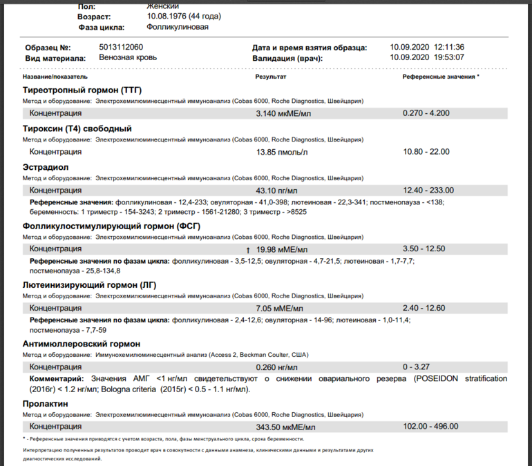 Мои показатели в прошлом году (40 лет): АМГ-0,6; ФСГ-6.