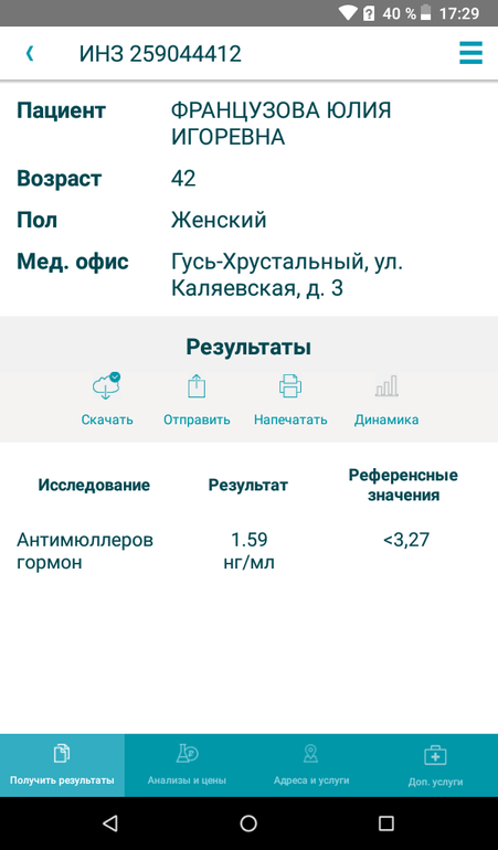 В этой таблице показаны нормальные (референсные) значения АМГ для мужчин и женщин по возрасту. Значения АМГ < нг/мл у женщин свидетельствуют о значительном понижении овариального резерва.