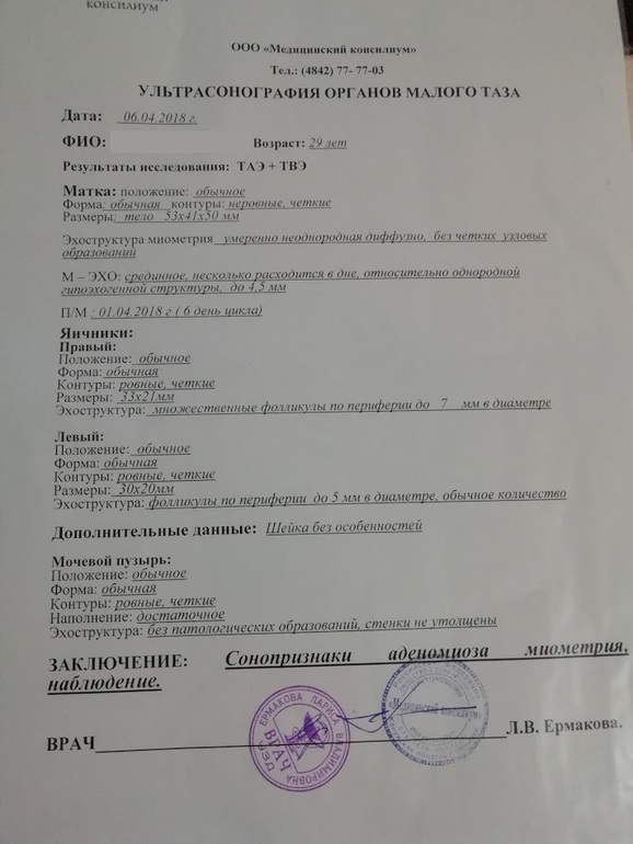 Хотелось бы уже поскорее приступить к дальнейшему планированию. Проблем с зачатием у нас не было (получилось с 1 цикла). Моя гинеколог пока не решила что делать дальше - склоняется к тому, чтобы пропить Визанну 3 цикла и беременеть на отмене. А если это и правда аденомиоз - он ведь снова вырастет после отмены.. Может есть смысл посмотреть его на УЗИ под конец цикла? Не хотелось бы лишний раз пить гормоны.