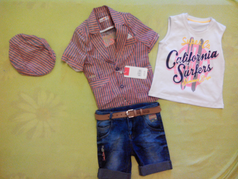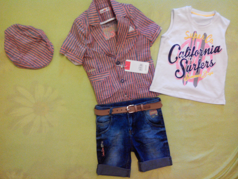 майка, пиджак, кепи - хлопок + шорты джинсовые