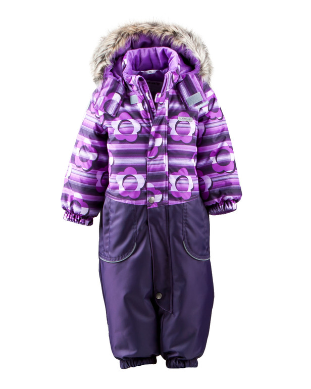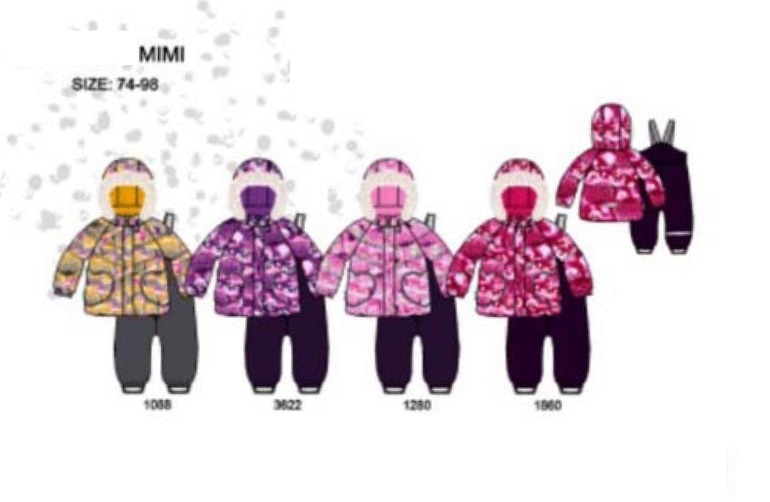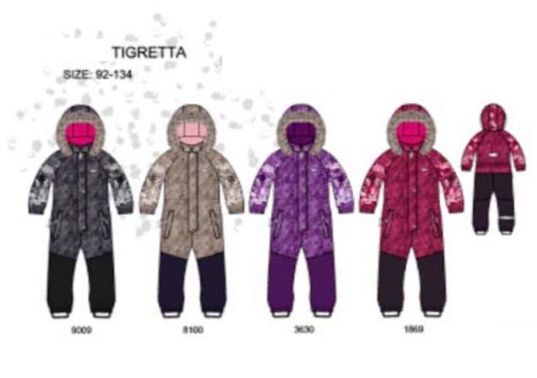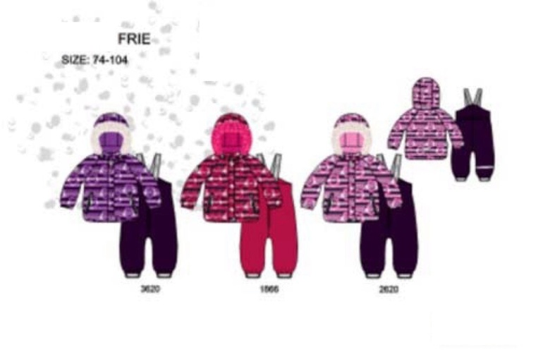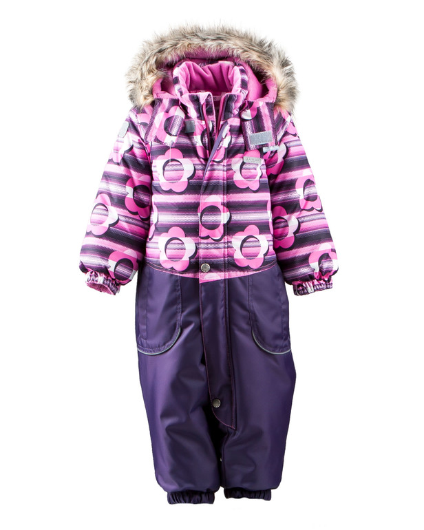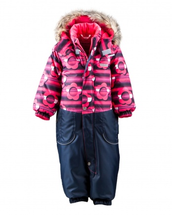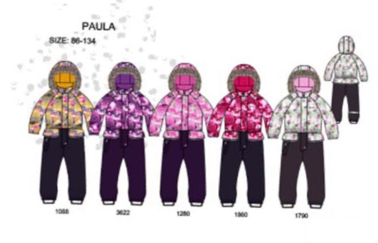 2 .Комбинезон для девочек PAULA арт 422 ЦЕНА 7000 руб выполнен в ярких цветах из ткани ACTIVE. Утеплитель KERRYFILL 330 гр., проклеенные швы Подкладка 100% полиэстер. Имеется одна молния и боковой карман со светоотражателем. На рукавах и ножках и талии резинки, штрипки (ножки), светоотражатели.