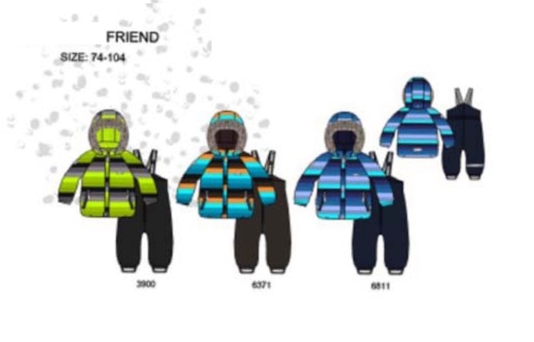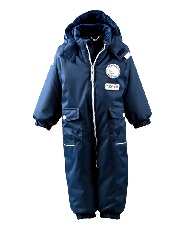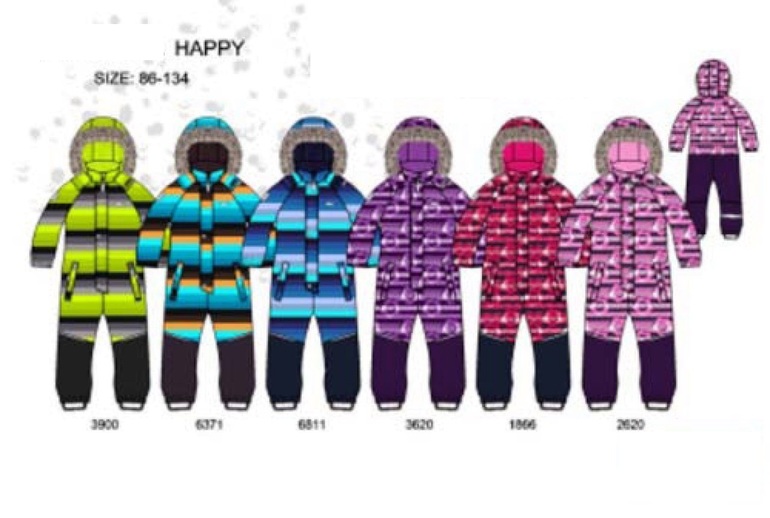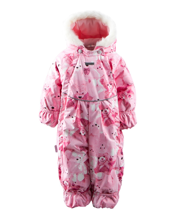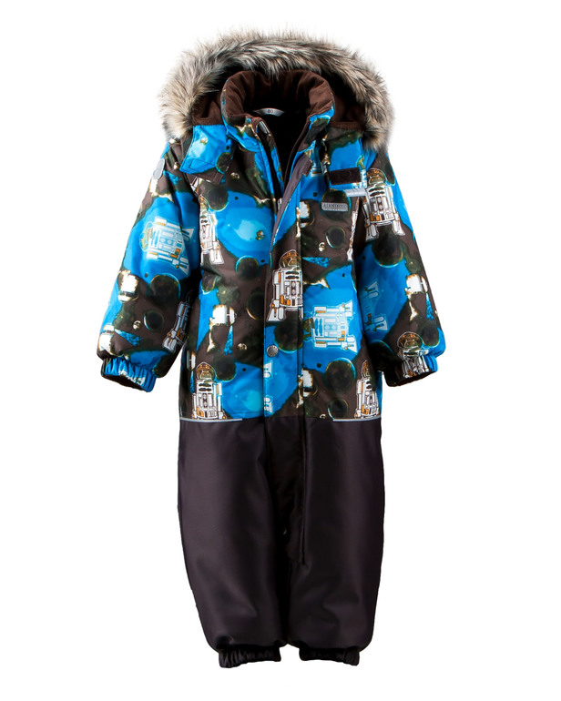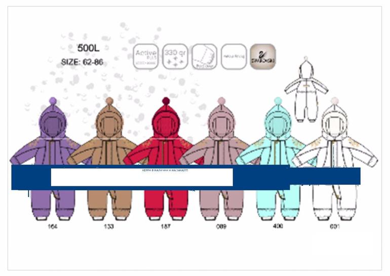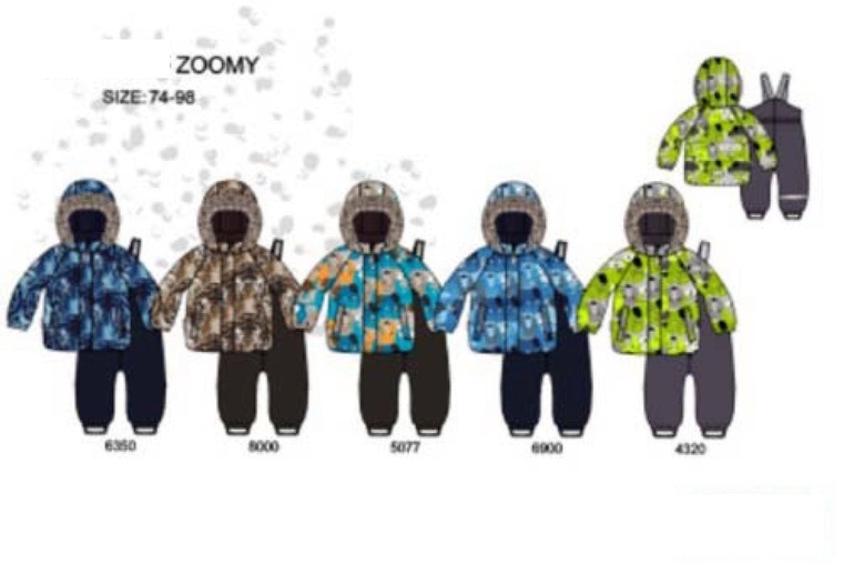 Утеплитель KERRYFILL 250 гр. Подкладка и отделка 80% хлопок и 20% полиэстер (велюр).На рукавах и сзади на талии имеются резиночки. На рукавах и ножках отвороты.Присутствуют две боковые молнии, что очень удобно для использования. Впереди нагрудный кармашек с рисунком. Капюшон не отстегивается.![]()