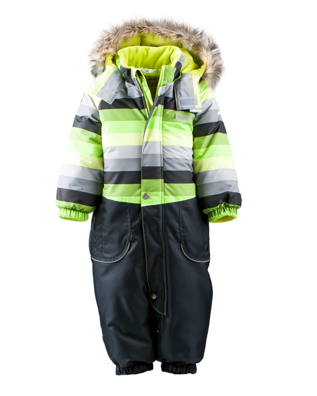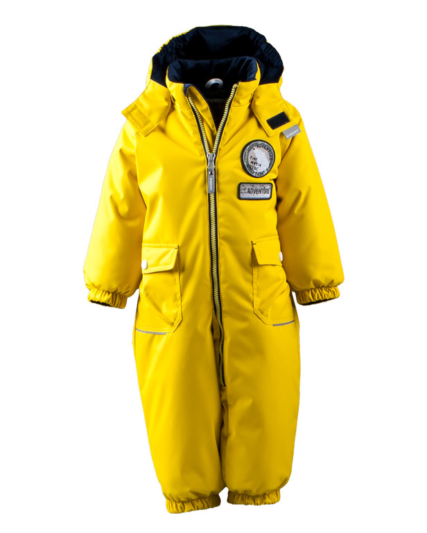 На рукавах и сзади на талии имеются резиночки. На ножках не съемные сапожки Присутствуют две боковые молнии, что очень удобно для использования. Спереди расположен нагрудный кармашек. Капюшон не отстегивается.![]()