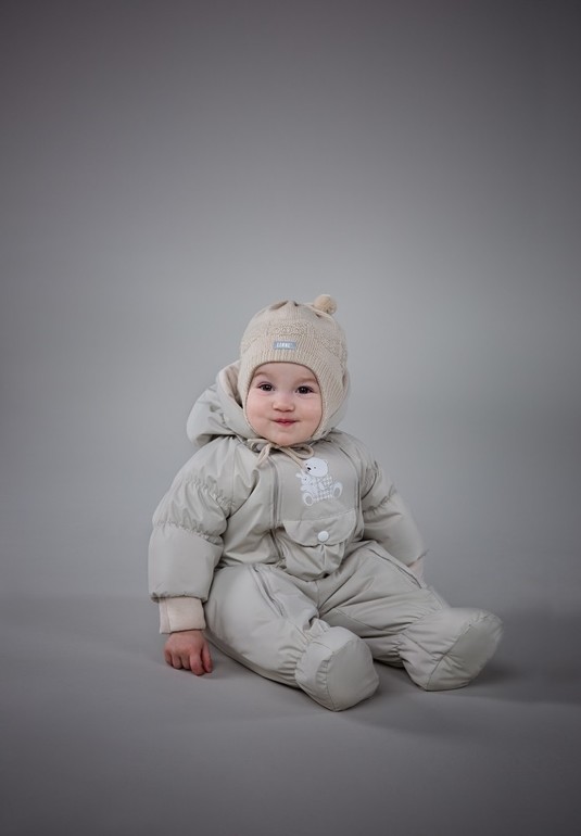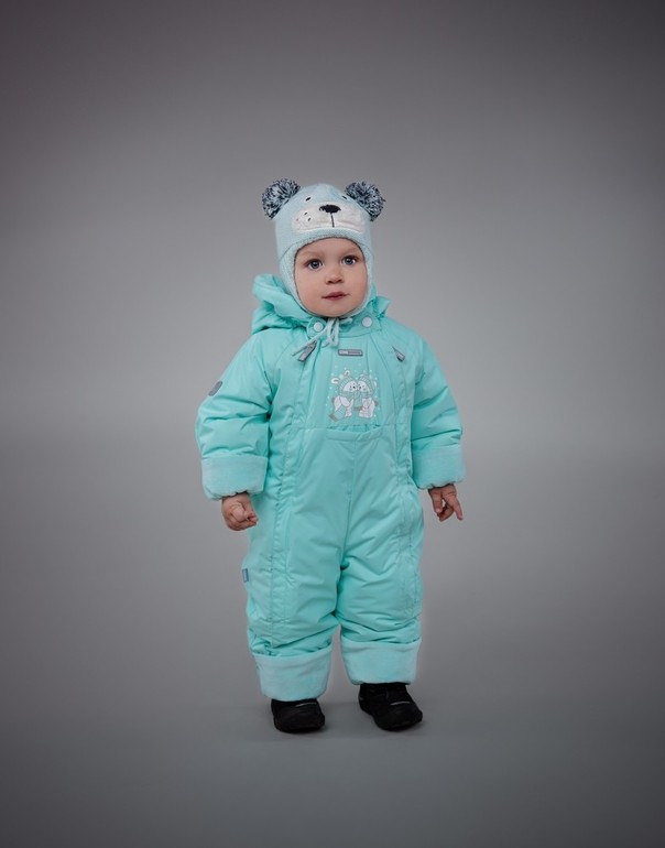 выполнен в нежной однотонной ткани ACTIVE.Утеплитель KERRYFILL 250 гр. Подкладка и отделка 100% хлопок (велюр).По кокетке и сзади на талии имеются резиночки. На рукавах и ножках отвороты. На капюшоне расположены ушки. Капюшон не отстегивается.![]()