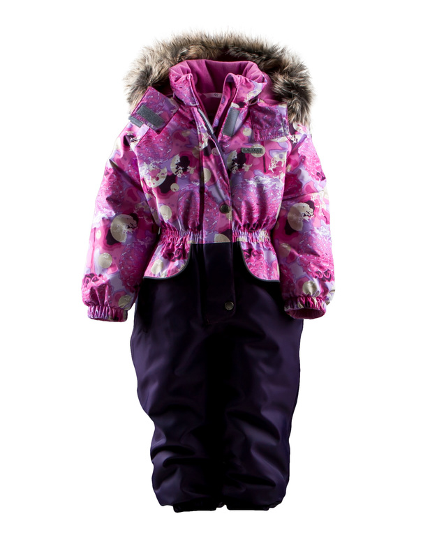 выполнен в ярких цветах из ткани ACTIVE с принтом. Утеплитель KERRYFILL (куртка 330 г., брюки 150 г.) Подкладка 100% п/э. Отделка капюшона и внутренней части воротничка - плюш, на капюшоне иск. мех. Имеются боковые карманы на куртке.Ткань гладкая. На рукавах и внизу - резинки.Боковые молнии на брюках отсутствуют.