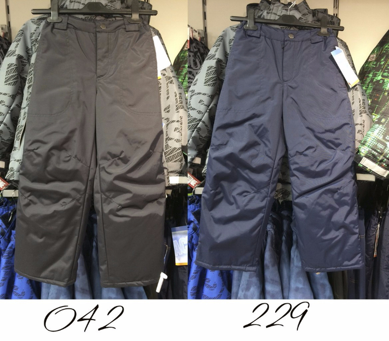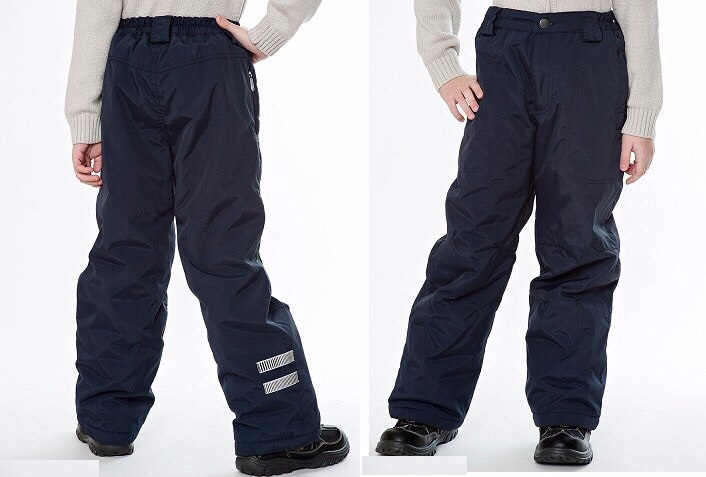 выполнены в темных цветах из ткани ACTIVE Plus в рубчик. Утеплитель KERRYFILL 80 гр. Подкладка 100% п/э. На талии резинка. Внизу - защита от снега. На ножках светоотражатели.