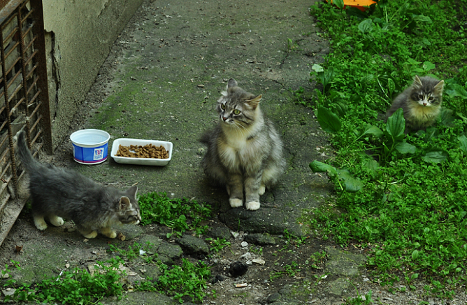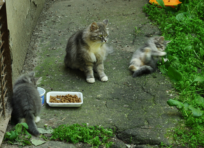 Район "Юго-восток"Вчера случайно увидела, что в подвале за решеткой живет кошка с котятами. Естественно, сразу же решила их покормить. Сходила домой, вынесла им кошачьего корма и водички. Вчера кошка на меня просто жутко шипела и рычала, тк думала, что я представляю угрозу ее деткам. Сегодня она меня уже встретила более приветливо, сразу начала мурчать и звать "к столу" котят.