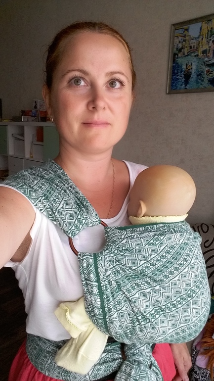 Личная консультация проходит с утяжеленной слинго-куклой, на которой отрабатывается техника намотки и только после уверенного овладения техникой вы пробуете наматывать слинг с ребенком.