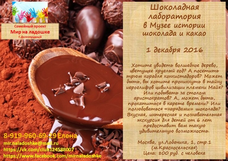 Район "Север"У нас в городе появился новый проект "Мир на ладошке". Организаторы предлагают интересные экскурсии и спектакли для детей. В ближайшее время будет концерт и спектакль в Долгопрудном, а также поездка в Шоколадную лабораторию.