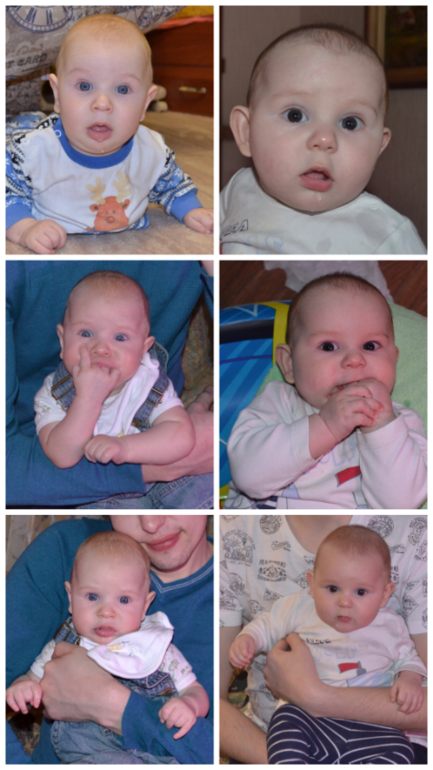 Вот такие разные мальчишки в возрасте 5 мес. (слева Костя, справа Тима)