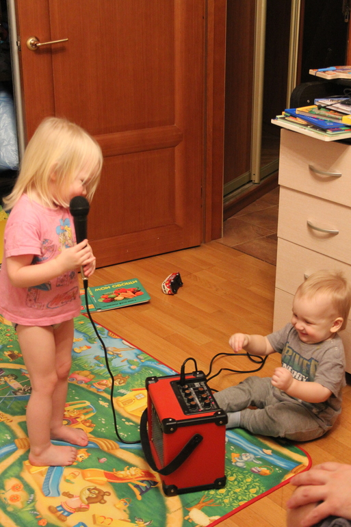 Последние несколько месяцев муж работает без выходных, т.к. в свободное от работы время, развивает собственное дело. Мы морально его поддерживаем и проводим выходные в режиме будней((( Но в честь прошедшего годовасия сына (пост будет позже), муж в воскресенье отключил все свои мобильные телефоны и остался дома))) Днем гуляли всей семьёй, но вечер был особенно фееричен, - муж достал забытые бас-гитару, колонки и микрофон. Дети были в восторге, соседи - в шоке)))