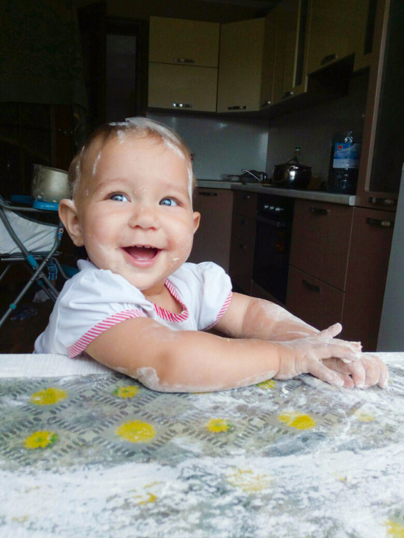 Моя мама не пекла в детстве. Не умела и учиться ей было некогда. И у меня какой то пунктик был, что мы ничего не пекли с мамой. И когда я родила дочку, то мечтала как я буду ее учить печь пироги и булочки))) И вот мое желание сбылось. Мы с девочками на кухне печем наши первые пирожки!))) Причем мы все втроем пекли их первый раз! Я взяла еще одну высоту))) Теперь прям хозяюшка))))