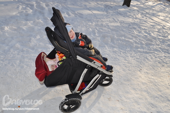 Подскажите, пожалуйста: насколько она устойчива зимой при очень активно вертящемся старшем ребенке весом в 15 кг?Просто у меня сейчас капелла, она трехколесная, когда ребенок высовывается сильно, начинает крениться на один бок, довольно тяжело ее удержать..Нет ли здесь такого же эффекта?
