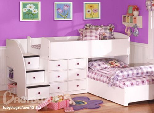 А мне в икее нравятся двухярусные кровати.. они невысокие, 150см где-то... планируем такую поставить. Старшего пока внизу поселить, а годика через полтора-два на верх отправить, а младшего вниз