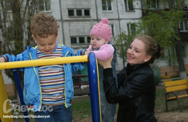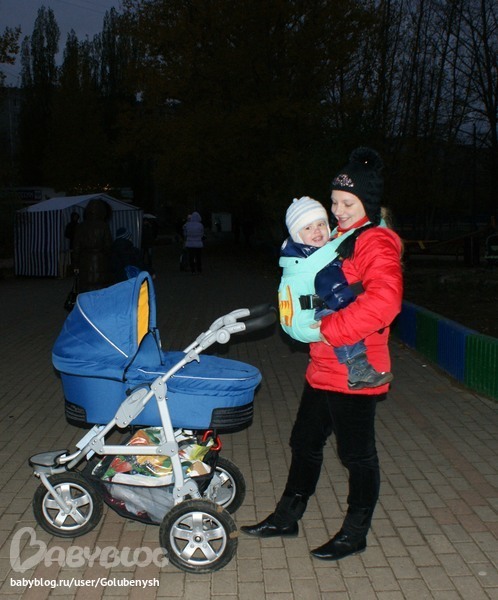 В первые месяцы младшей гулять ходили так: дочка в коляске-люльке (она влезает в лифт), сын на мне в слингорюкзаке (пристёгиваю в квартире). Плюсы: не нужно беспокоиться в момент захода в лифт и выхода из него, где там старший, как бы его не защемило дверями, которые очень быстро начинают закрываться. Идём так до площадки: не нужно плестись с черепашьей скоростью, поднимая каждую бяку через пол-метра, и переживать, что машины могут поехать, и надо быстро катить коляску, чтобы малышка поскорее заснула. Приходим на площадку – отстёгиваю. Дочка уже заснула в коляске, коляска всегда рядом, я на горках-качелях со страшим.