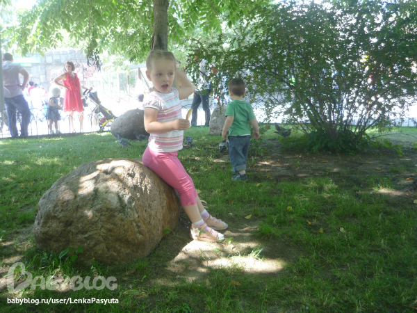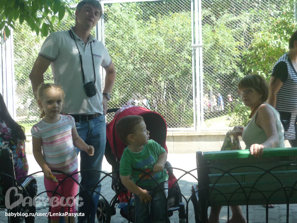 Нашли местечко в теньке сели перекусили, на удивление дети поели с хорошим аппетитом, еду я брала из дома так как подозревала, что пока доедем все проголодаются. Покушав мы пошли дальше, посмотрели жирафа, слона, потом пошли через мостик к вольерам с обезьянами, нашли обезьн, еще каких то зверей, бродили мы уже долго и дети очень устали решили найти тенек покушать мороженого и чтоб дети поспали. Вобщем просидели мы на аллейке рядом с зебрами минут 40, время было уже пол седьмого, решили собираться на выход, Саша уснула в коляске, Корнея муж тащил на руках, пошли кушать в Му-Му около метро, дети есть там ничего не стали, поехали домой голодные, зато довольные, Саша всю дорогу домой рассказывала про обезьн, а на следующее утро предложила снова отправиться кормить обезьян бананами. Муж сказал что теперь аж в следующем году...
