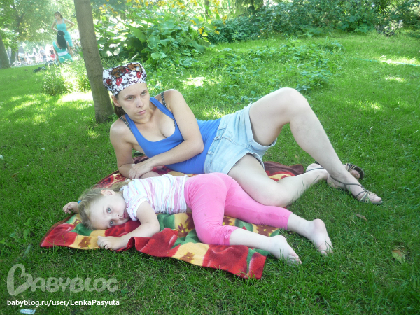 Пока Корней спал в коляске я пыталась уговорить Сашу поспать на травке