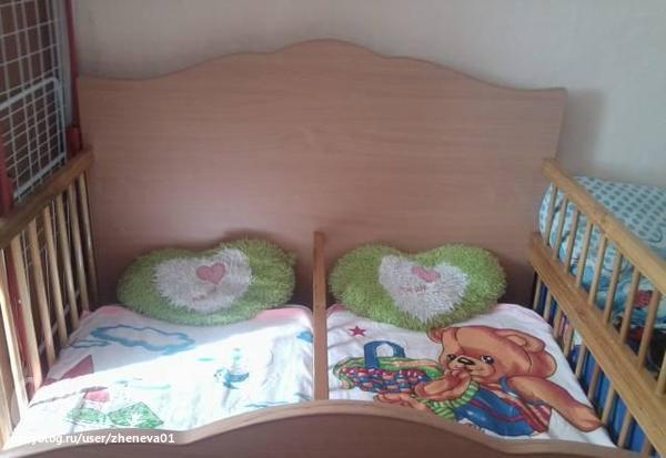 Мы когда Серёжа родился, Мише ещё года не было. Серёжу мы в Мишкину кроватку малышковую с решетками, а Мишку в такую кроватку с бортиками: