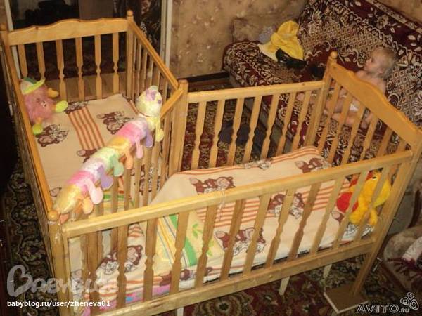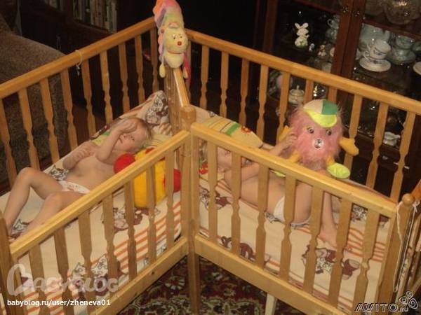 возьмем с дачи простую кроватку, а ее кроватку младшей отдам,скорее всего, тк с маятником...