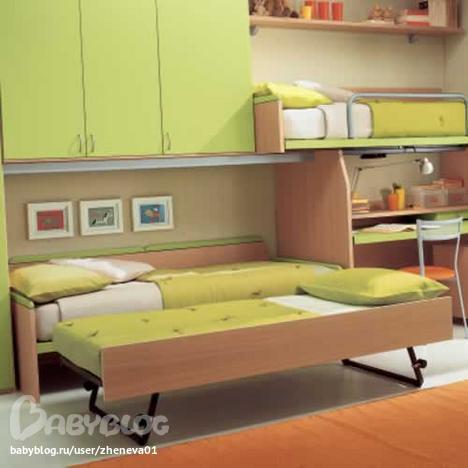 У меня двухярусная, средний внизу спит с 9 мес. На второй этаж лазить пока не разрешаю, а так кровать большая и бортики есть. Да и потом оба там спать будут, а места занимает мало. Диванчик как вариант, а вот детскую я бы не стала покупать, пустая трата денег.