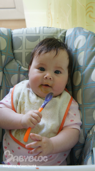 БолталкаПолинку начала кормить пюрешками, и Соне тоже надо их кушать вдруг стало. Причем из такой же чашки и такой же ложкой! Хорошо, что в наборе для малюток было 2 ложечки. Ну а уж 2 одинаковые чашки дома найти не сложно)