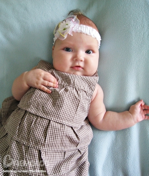 Ангелинка растет большим хомячком, щеки такие, что глаз не видно) Гулит во всю, постоянно сама с собой разговаривает. Сама переворачиваться начала со спины на животик. Плачет только, когда хочет кушать или нужно поменять памперс. Спит всю ночь не просыпаясь. Раньше перерыв между кормлениями был 6 часов, сейчас 12! Я сначала испугалась, потому что Настя стабильно через каждые три часа просила есть, не важно утро это, день или ночь. А теперь радуюсь) Да и вообще она умничка! ттт)