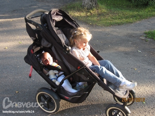 Все хорошо, но я не могу понять как ей пользоваться зимой и осенью. Если внизу будет сидеть ребенок, он будет весь в грязи, Мы отьенздили в ней зиму, когда маленький спал, он хотя и крупный, но помещался туда в пуховом конверте, потом купила самую простую люльку вкладыш. Летом и так и так катались, а с приблежением осени я думаю ее менять. Город у нас дождливый, зимой грязи по еколено, точнее жижы грязной. Присматриваюсь к беби джогеру, старший у меня отказываеться ходить далеко ножками сам. И все таки я привыкла к мобильности, когда запихал детей в коляску и побежал. А вообще конечно для погодок отличный вариант, она очень меня выручала.