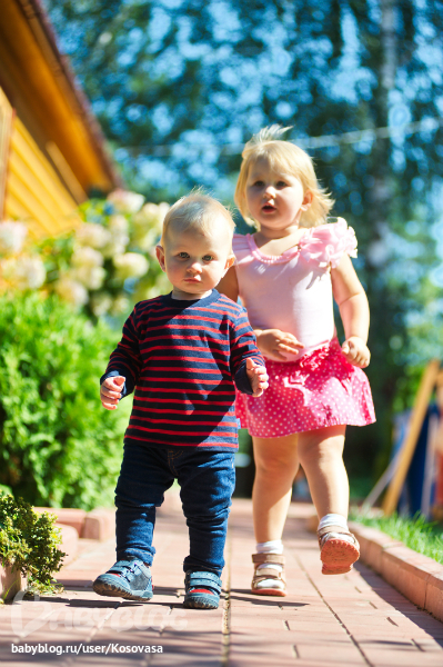 Наши детки (развитие, успехи, фото)Скоро сыночку уже годик. Самое трудное позади, по крайней мере мне так кажется))) Ксюша говорит уже все, реально все. Ваня ходит с 8 месяцев, поэтому сейчас он уже по лестнице забирается на горки, стулья, столы и т.д. Любимые игры у них - это отнимать друг у друга игрушки и толкаться или щипаться. Причем покупка игрушек в 2-ух экеземплярах приводит к тому, что обы экземпляра будут у Ксюши. Иногда у них бывают приступы нежной любви и они целуются, гладят друг друга по голове. Когда они бегают голышом перед купанием, Ваня любит догонять Ксюшу и кусать ее за голую попу, чем вызывает дикий восторг у Ксюши. Без смеха на это смотреть нельзя. А вот на любые замечания в адрес Ксюши, она уверенно сообщает "Это не я, это Ваня!!!" А если ее ругаешь и говоршь "Сейчас по попе получишь", она - "И Ване по попе НАДО!" Так что весело у нас! Вот наши фотки: