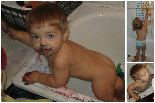 Да там все не так страшно, как кажется))) Детей в ванну кучкой запихнул, отмыл, краска отмывается легко, а затем и ванну сполоснул и все))) В комнате вообще порядок, клеенка только грязная.
