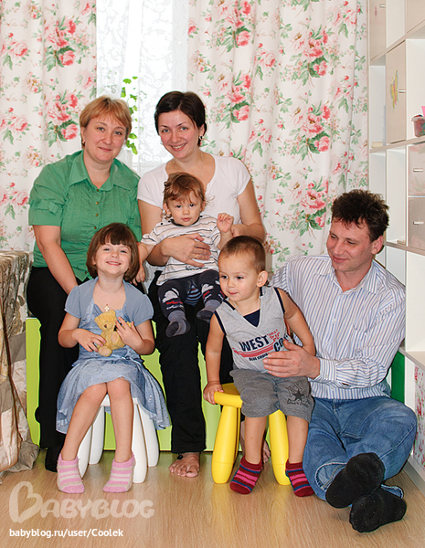 Трое и более погодковПриезжали к нам в гости Крестные. Очень мы этому рады. Детки любят гостей. Я с Глебушкой на руках. Дочка София и сын Данилка на стульчиках. С нами рядом Крестная Глебушки и Крестный Софии.