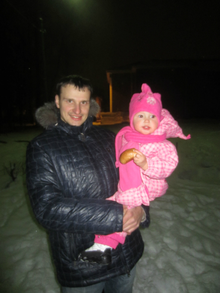 А на папу шапку оденьте,холодно ведь,бррр)))мы вообще все болеем(((