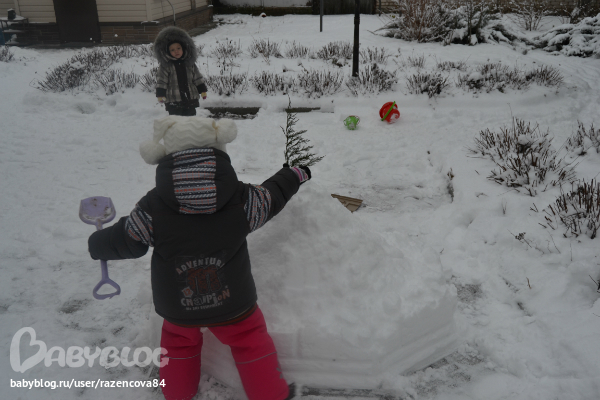 На одежду внимания не обращаем....Маша ходит в Степиной новой куртке, которая ему велика, а Сепа в Машкином костюме, который ей мал, Машкин новенький костюмчик в пути....Тут мы делали замок...еле загнала на ужин домой.
