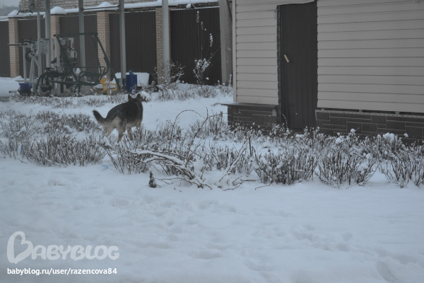 Выход на улицу происходит так..... одеваю Мурзика и отправляю во двор, она нас ждет возле двери....двор у нас огорожен и все калитки заперты! Затем одеваю Степика и на выход....дверь не закрываю....одеваюсь сама в коридоре...холодно, а куда деваться, это один из ОГРОМНЫХ ПЛЮСОВ своего дома....Фух...вышли все)))) Пока я одевалась приехал мужжжжжжжжж