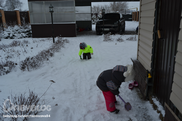 А на улице красота.......Пока я варю кашу Маше, Степе и ПАПЕ....дети развлекаются....сами по себе, так как папа уехал на нашу стройку, строим дом, там заливали лестницу и накосячили.....обычно этими делами занимаюсь я, но в выходной я невыездная)))