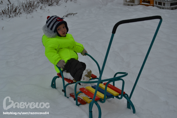 Прогулка прошла как обычно, погоняли Пирата-наш пес, пупытались открыть папину машину, достали санки....на детской площадке никого, вернулись во двор....