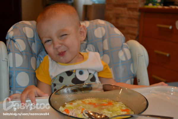 Ну и как я говорила в субботу можно все, даже ай пад)))) Суп остыл, но кушать никто не спешит, но кое как договорились... Маша ест сама, Степу кормлю я, одновременно кормлю себя)))