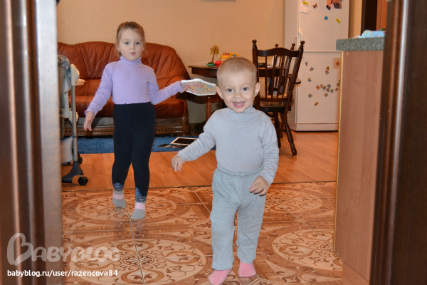 Ну собственно все убрано, пока закипает компот начинаем одеваться, одеваю обоих сразу-колготки и кофты...при этом периодически они разбегаются...