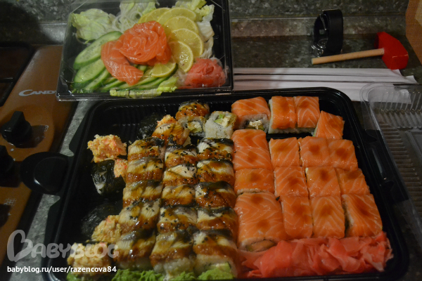 Итак, время около 18.30, папа привез суши, а бабушку забыл...поехал за ней...я жду ужина)