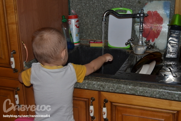 А пока, мою посуду...Степик помогает.....