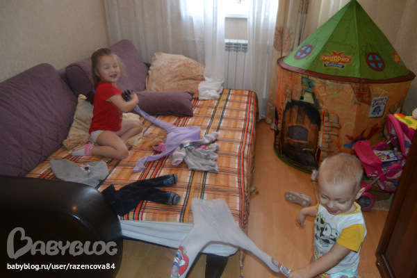 Время около 17.00, вообще за временем не слежу....Далее по плану развесить в сушильный шкаф вещи, конечно мои помощники рядом))) И сборы на прогулку, тут начинается самое интересное, прыгание по дивану и раскидывание вещей, а так все по плану...первая Машуня, далее Степик и потом я))))