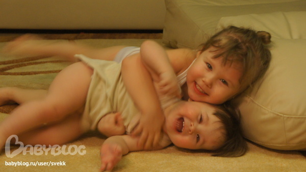 Муж приходит с работы, ложиться на ковер и смотрит телик. Дети ползают по нему, ноют, а он и не замечает их! "Отдыхает" от работы. Как только мои нервы окончательно сдают (кухня у нас вместе с гостиной и я это все вижу и слышу, накрывая на стол), иду выключать телик и гнать всех за стол. Интересно, а у меня когда рабочий день заканчивается??? И ночью у меня двойная ставка или как..??)) К стати - у Полинки клыки на подходе - чувствую, скоро начнется жопа.