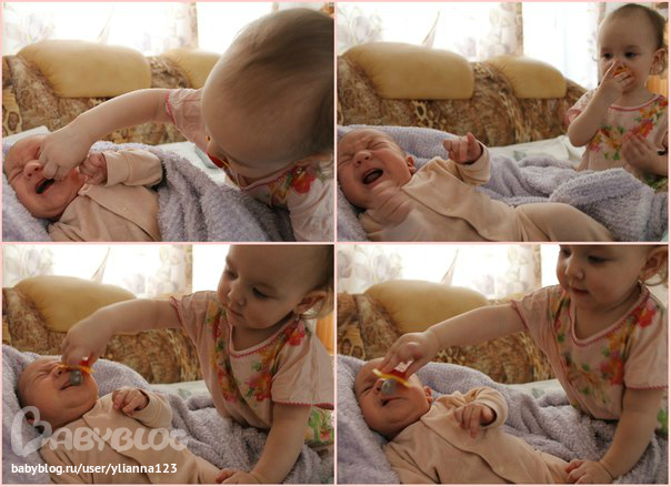 Какая у вас помощница!))) А мне говорят, что няньки не получится у нас с Акимушки! Вон, как, оказывается помогают маме малыши. и наш и постарше уже будет, чем ваша красавица!)))) Думаю, что из него тот еще помощник будет!))))