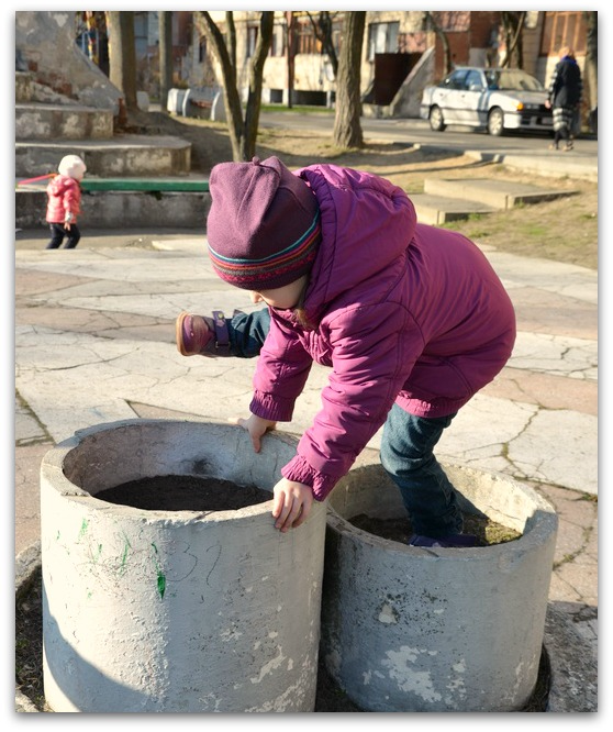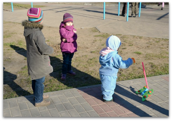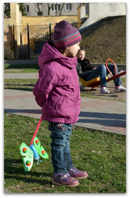 Глазела на детишек с отобранной у какого-то малыша бабочкой-каталкой в руках.