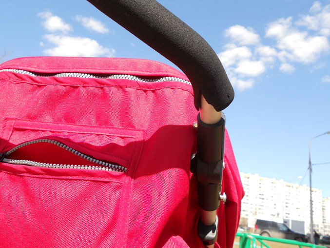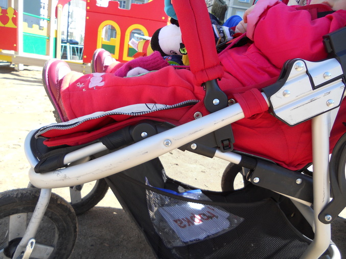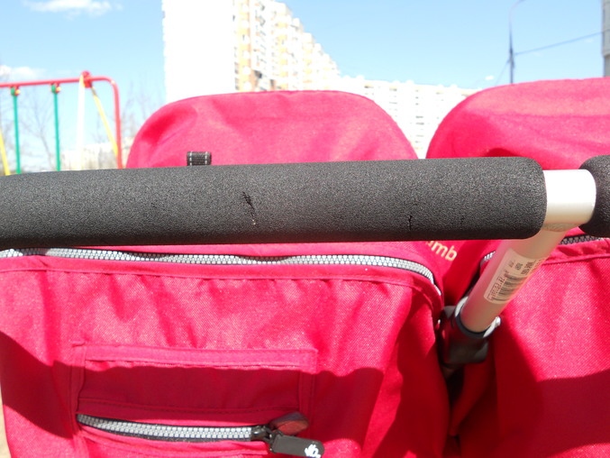 Лопнула снизу ручка (пыталась протиснуться в узкий дверной проём), так как снизу, то ничего не видно. Есть на ручке небольшие царапинки от замка на муфте для рук.